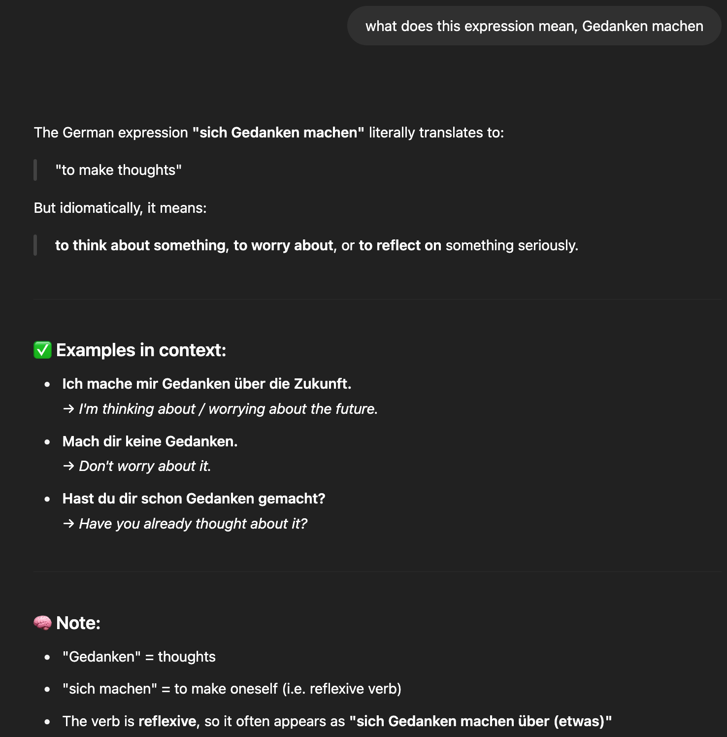 and you can easily see how you can ask the LLM to test you on literally everything you looked up and make up all kinds of assignments, etc.