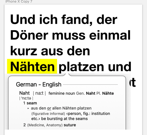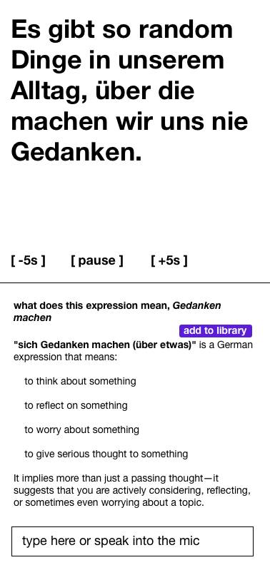 i'm still learning German (it's a lifelong quest, Mark Twain was right), so i put together this proof of concept — just subtitles over a podcast trailer — and it felt incredibly satisfying: i could read every word and see what i missed